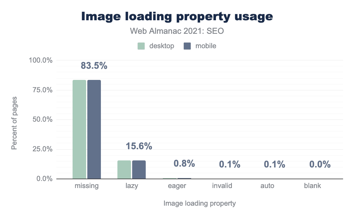 loading="eager"which loads the image as soon as the browser loads the code. - 0.1% of pages use invalid loading properties.