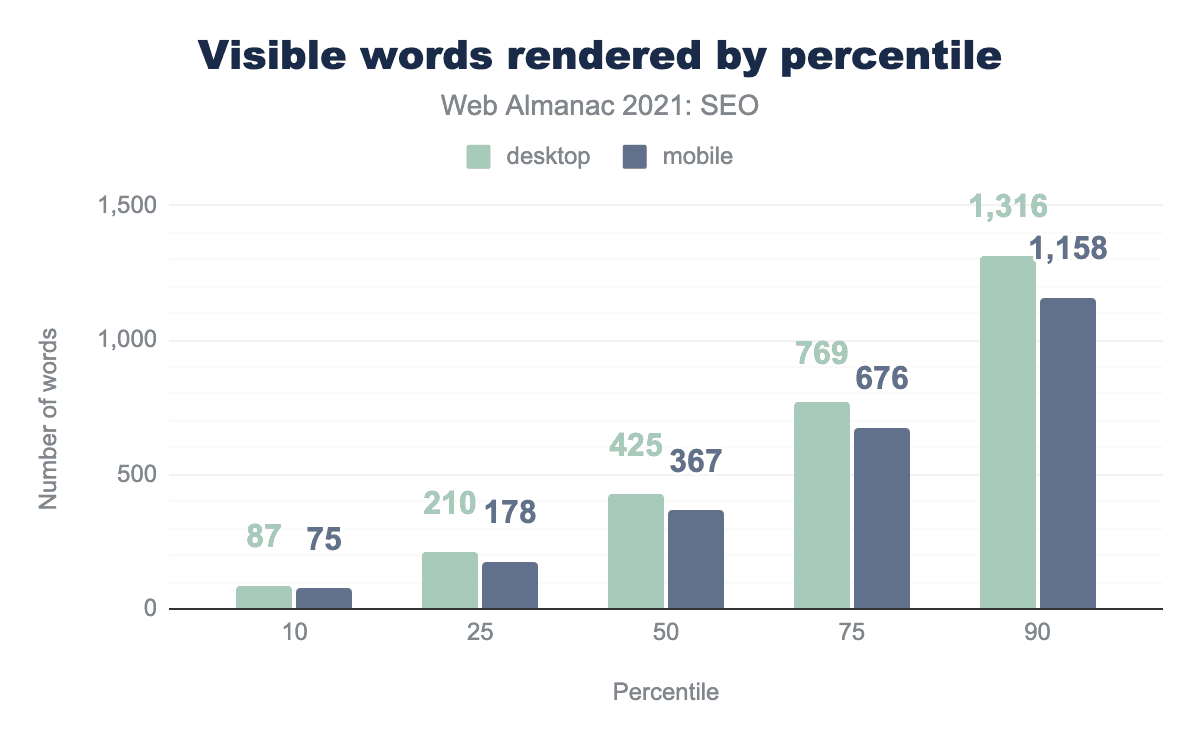 - The median rendered mobile page contains 367 words, versus 348 words in 2020.