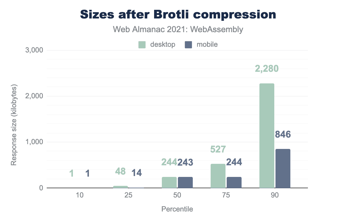 Unfortunately, it shows that ~40% of WebAssembly responses on mobile are shipped without any compression.