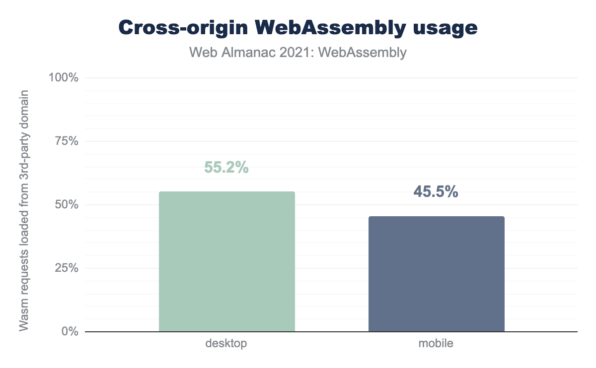 Those tradeoffs are most consistent with analysis done in other chapters, but if you’re interested in gathering other statistics, you’re welcome to run your own queries against the table httparchive.almanac.wasm_stats.