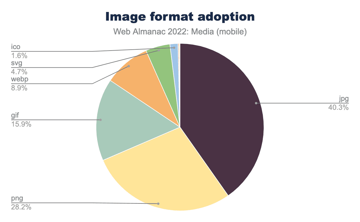 Now that we’ve gleaned a bit about the web’s image content, what can we say about how that content is encoded for delivery?