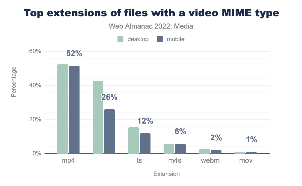 What formats are sites delivering in 2022? MP4, with its universal support story, is king: