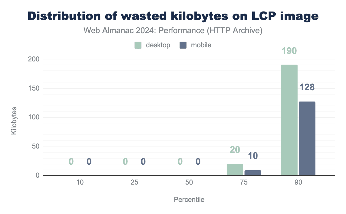 The audit results indicate that the median website wastes 0 KB on LCP images, i.e. serves optimized images. This leads to the conclusion that many sites are optimizing their LCP resources effectively, although some still need to improve.