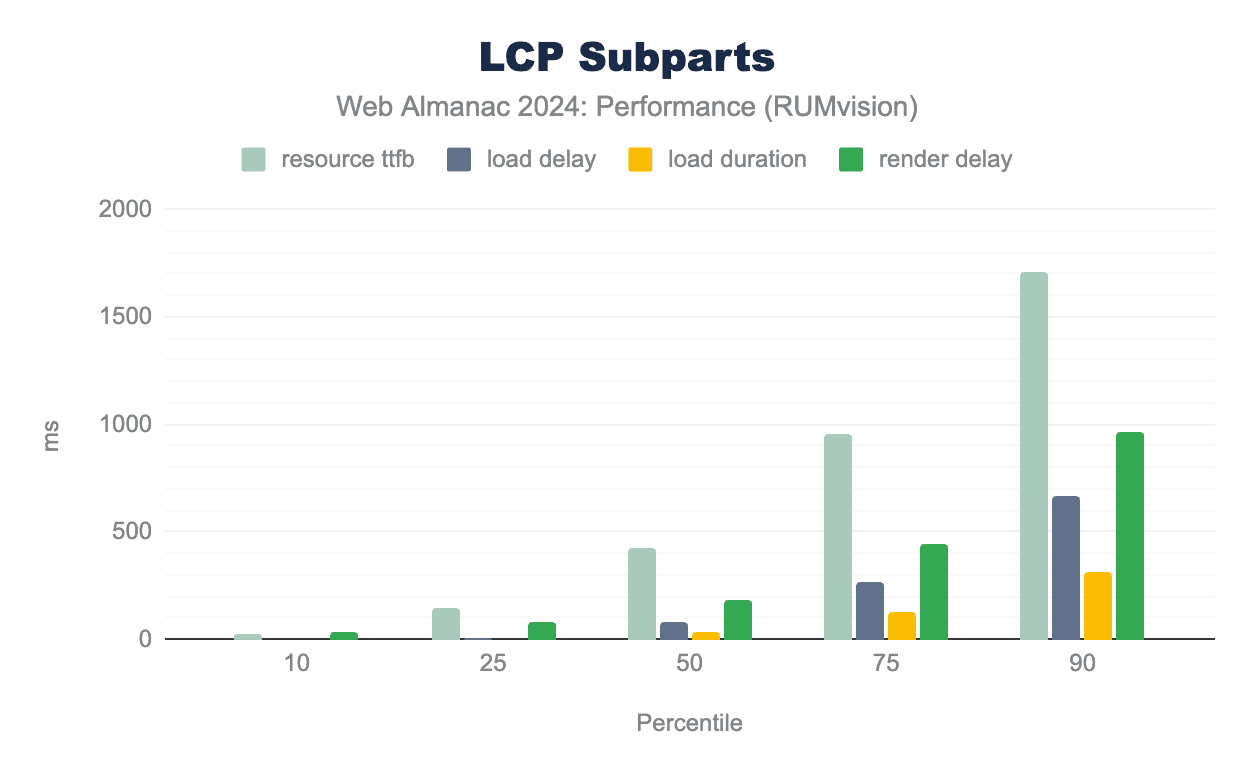In the article Common Misconceptions About How to Optimize LCP, Brendan Kenny analyzed a breakdown of LCP sub-parts using recent CrUX data.
