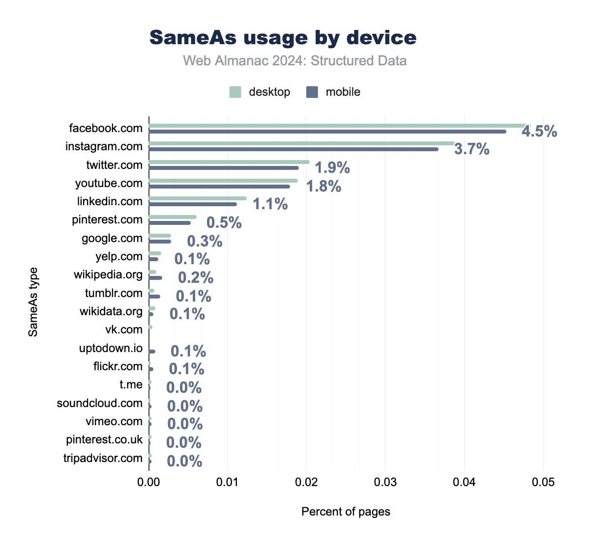 Figure 3.36. sameAs usage by device on mobile and desktop for various platforms.