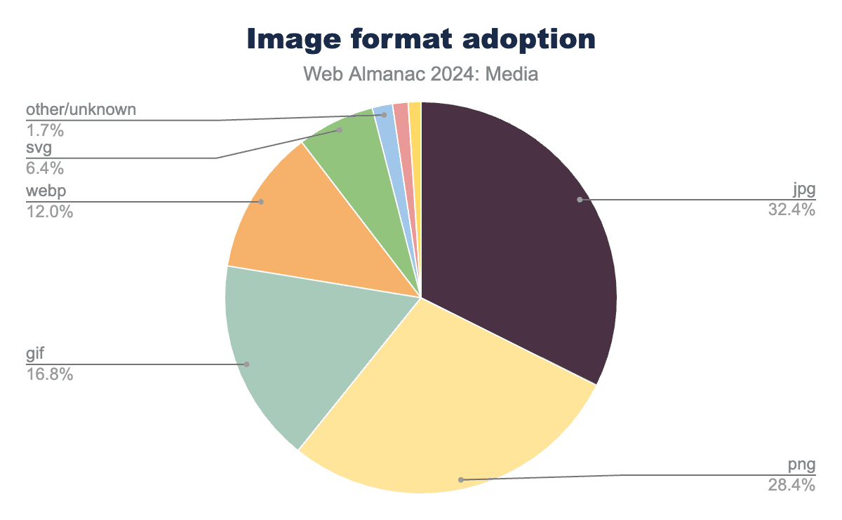 With data showing that an average page weighs around 8MB, the next logical question is where all those kilobytes are coming from. Modern pages are composed of many different pieces, including basic building blocks such as HTML, CSS, and JS, as well as fonts and images to enhance visual presentation.